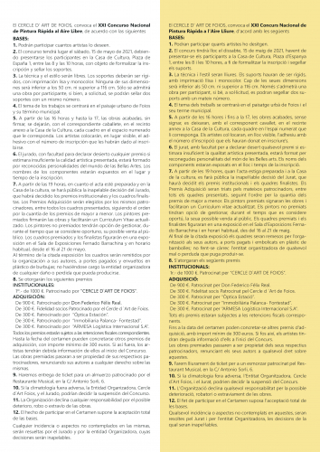 10. Si la climatología fuera adversa, la Entidad Organizadora, Cercle d`Art de Foios, y el Jurado, podrían decidir la suspensión del Concurso.