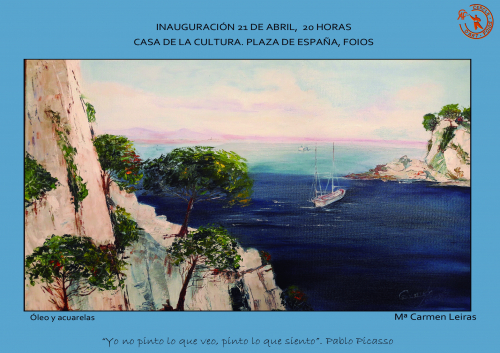 Xaro Pardo y Carmen Leiras, dos amigas que comparten aficiones, ilusiones y proyectos. Próximamente nos deleitaran con una exposición refrescante, con una clara alusión a nuestra tierra donde el mar nos acompaña y se convierte en protagonista. Ambas manchan sus pinceles con los colores de nuestro mediterráneo.